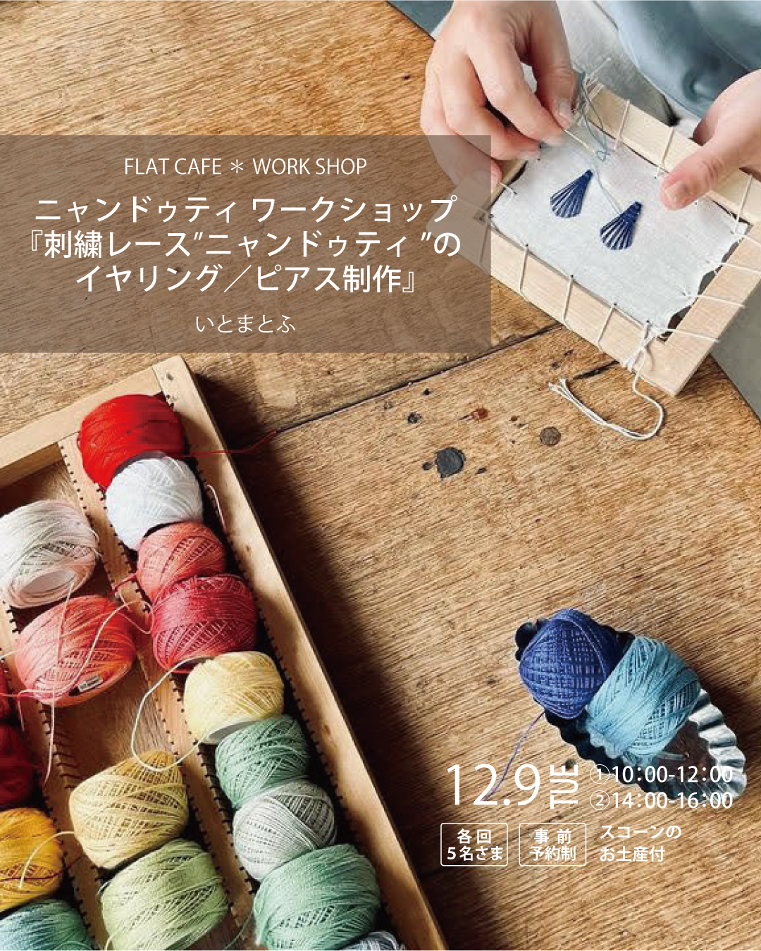 “ニャンドゥティ”という刺繍レースの技法で扇型のモチーフを制作してみましょう。完成したモチーフは、イヤリングもしくはピアスに仕上げてお持ち帰りいただけます。