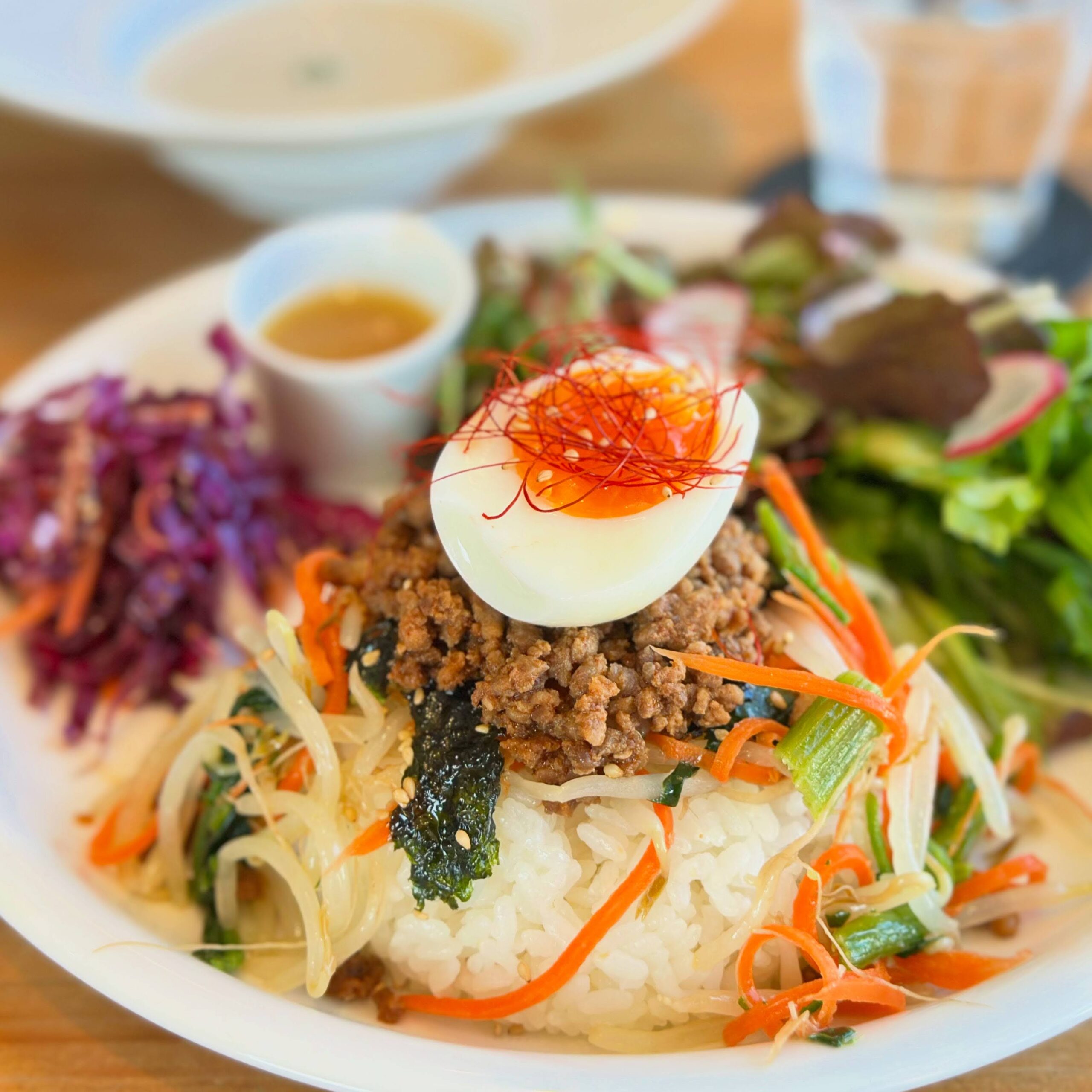 FOOD NEWS2月の月替わりごはんプレートランチ 2026年1月31日2026年1月31日FLAT CAFE今月の月替わりワンプレートランチです。 ★月替わり ごはんプレート[月替わりメイン・ごはん・副菜・有機野菜の旬サラダ・ベジブロスのスープ]〜熊本県産の美味しいお米を使ったごはんものプレート。旬の有機野菜のサラダやファイトケミカルが摂れるベジブロスのスープ付き。今月のメインは「ビビンバ」です。お楽しみに!